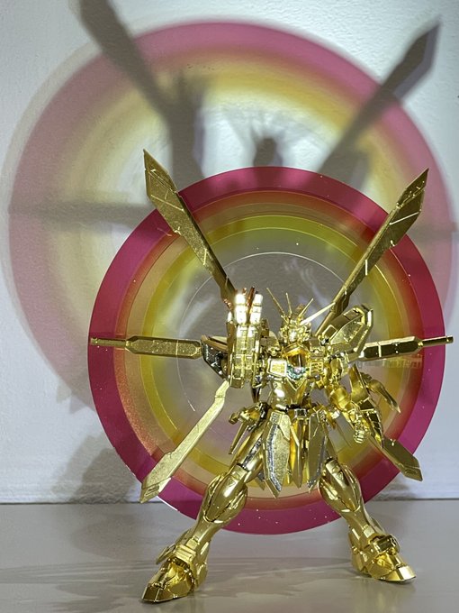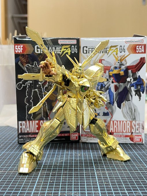 純金箔押しGフレーム ゴッドガンダム。 RTA無事完走しました。 記録・5時間半(内30分は乾燥と組立) 周りの『箔押ししないの?』コールからの 悪ノリ企画でしたが、楽しく出来ました。 とりあえずメガサイズの箔押しに戻ります。 ありがとうございました。 #Gガンダム #金箔 twitter.com/tkmotsu1/statu…