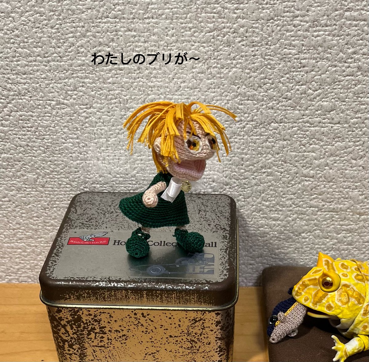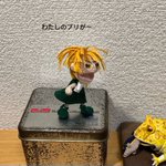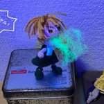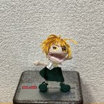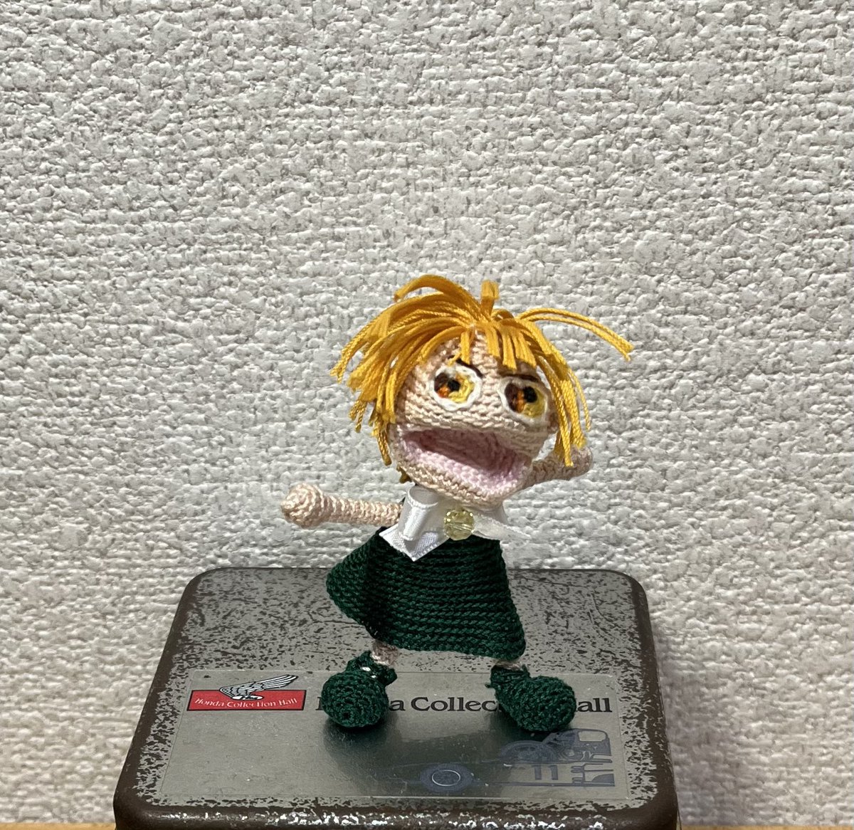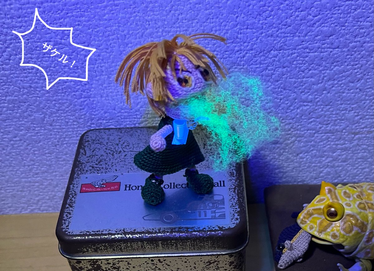金色のガッシュをあみぐるみ #金色のガッシュ2 じゃなくて 小さいガッシュ にょほ羊毛作家さん@nyofoolest のアイディアを見て、紫外線ライトで「ザケル」してみたり 糸:オリムパス レース糸金票40番 #あみぐるみ #amigurumi