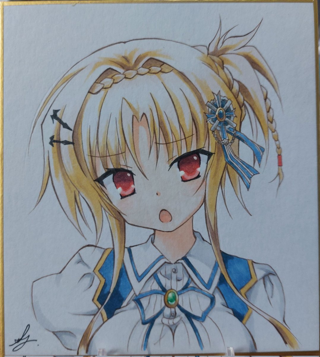 イラスト投稿🌸 んーやはりカラーは、難しい😅 今回は会話の流れから カラーイラストを色紙にと依頼?お願いされ練習してみたけども 課題が残る結果に(( ¯• •¯ ))ガクブル 贈った人が満足なら〇! コメントやイイネやRT よろよろでーす!! #イラスト好きな人と繋がりたい #金色ラブリッチェ