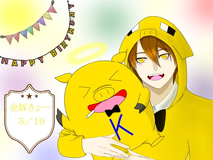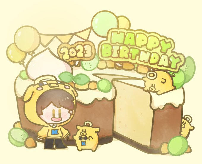 改めまして誕生日おめでとうございます🎁🎉🎂 きゃーさんとレウさんにとって良い歳でありますように‼️‼️ #金豚きょー誕生日 #イラスト貯金豚 #2023誕生日めでたレウ #強く生きろレウクラ