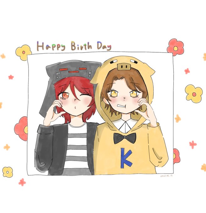 1日遅れました;; きょーさんレウさんお誕生日おめでとうございます~!!!!!🎉💥💥💥 素敵な一年をお過ごしください🫶🏻💞 #金豚きょー誕生日 #イラスト貯金豚 #2023誕生日めでたレウ #強く生きろレウクラ