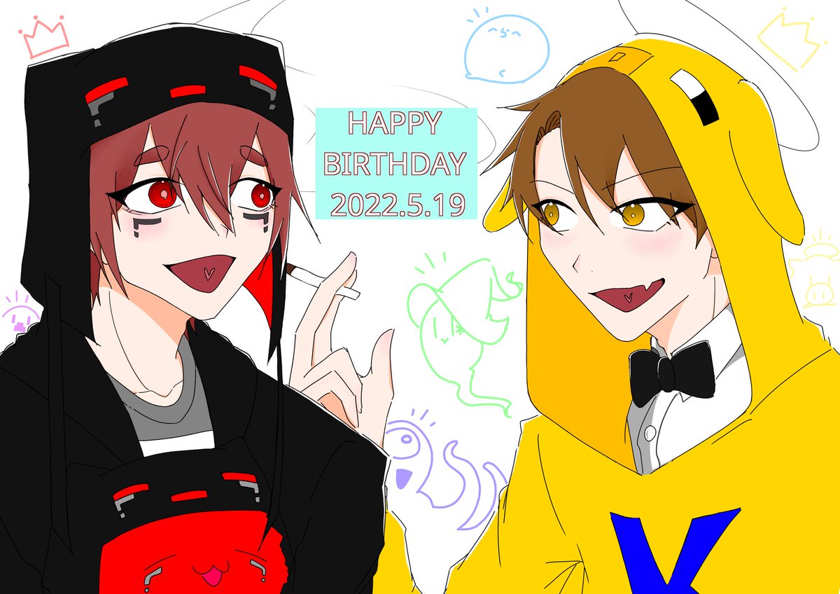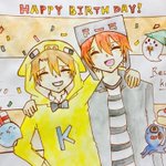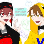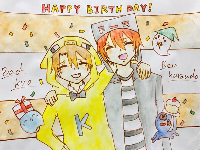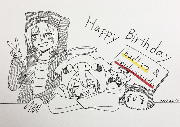 お2人とも、誕生日おめでとうございます!!!🥳🎉 素敵な1年になりますように!!! アナログ落書き絵で失礼。 #金豚きょー誕生日2022 #イラスト貯金豚 #レウクラウド生誕祭2022 #強く生きろレウクラ