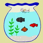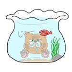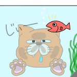 お隣さんのアツい視線((食欲)) ・ ・ がまんよ、がまん。 #イラスト #オリジナルイラスト #ゆるいイラスト #イラスト好きな人と繋がりたい #絵描きさんと繫がりたい #猫 #魚 #金魚鉢 #cat #fish