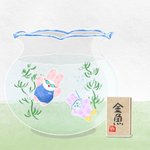 蒸し暑い日はこれに限るね✨🐰🐰✨ #アンブレネコ #umbreneko #アンブレネコのぬいぐるみ #イラスト #插圖 #插图 #삽화 #ゆるかわ #夏 #金魚 #金魚鉢 #お絵描き #イラスト好きな人と繋がりたい