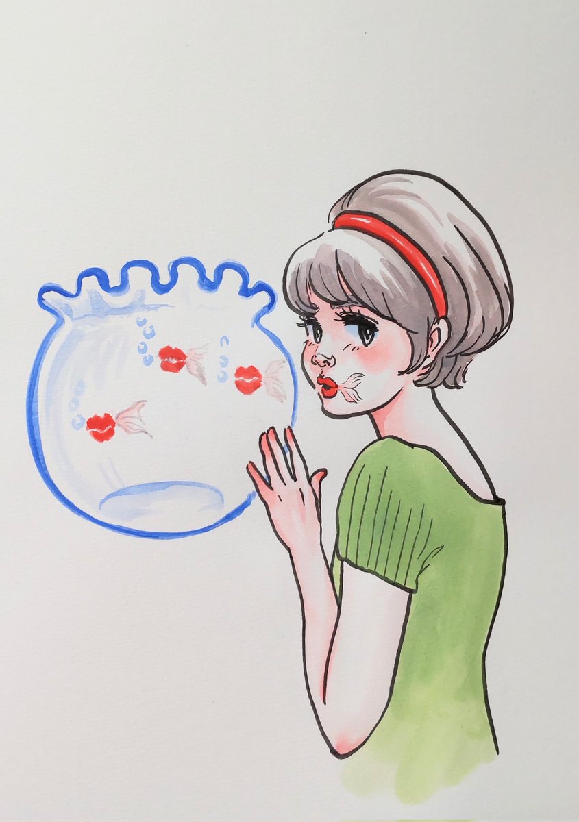 \ #100日チャレンジ / 10日目 金魚鉢 もうすぐ8月が終わりますね.・☀️ #illustration #illust #illustrator #kawaii #イラスト #イラストレーター #イラスト練習 #お題募集 #かわいい女の子 #メイド服 #金魚 #金魚鉢 #夏 #goldfish #goldfishbowl