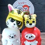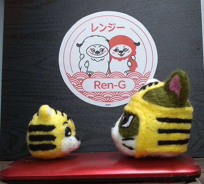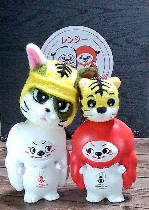 明日は久々の #うのスタ‼️ フライキーVSシャズリーは猫対熊か… 相手は強敵だから 虎の威を借る狐ならぬ 🐯虎の威を借る😺猫で😋 #釜石シーウェイブス #豊田自動織機シャトルズ愛知 #釜石鵜住居復興スタジアム #ラグビー #リーグワン #フライキー #なかぴー #シャズリー #div2 #D2 #羊毛フェルト