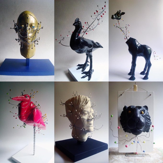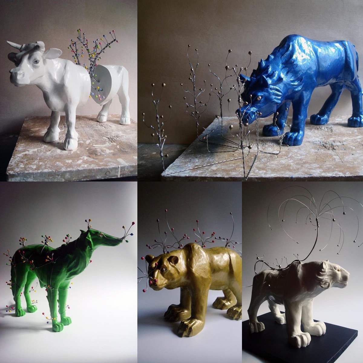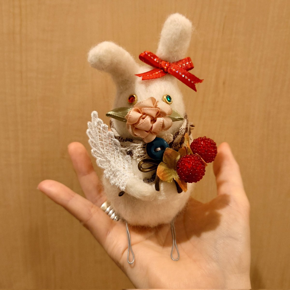 #あなたのみず色の作品を見せてください 0.28mmの極細ワイヤーで作る手のひらサイズの虫。 鉱物の妖精をテーマに作っている たま蟲 シリーズ。 #ワイヤーワーク #針金 twitter.com/i/web/status/1…