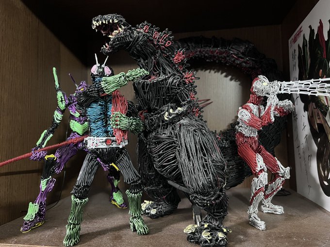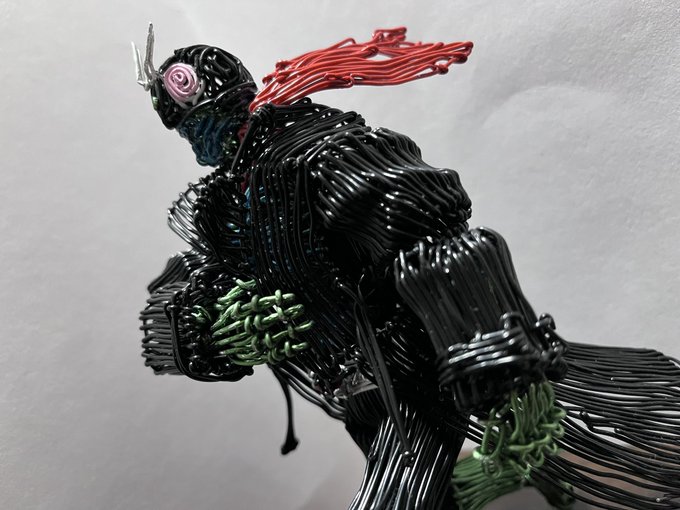 完成!! シン・仮面ライダーにて登場する 仮面ライダー1号です!! 造形や可動域を広くしたりと今までの技術で頑張って作りました。 初期デザインが洗練されていてカッコいい! 着脱可能なコートも作りました。 #針金アート #シン仮面ライダー twitter.com/i/web/status/1…