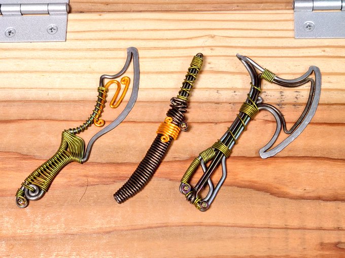 #2月になったのでフォロワーさんに自己紹介しようぜ 針金細工の創作仮面被ったり、リアルサイズの武器や装備創ったり、ネタ作品創ったり、真面目にオシャレ系創ったり…(°∀°) 針金でジャンル関係無くあれやこれや変なモノ創って売ってる針金野郎(`・ω・´)キリッ #針金細工 #ワイヤークラフト