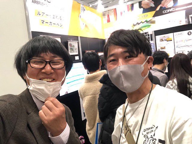 釣りフェス・コピックブースにご来場いただきありがとうございました ! 今回株式会社マツキさんのコピックでのカスタムペイントルアーの隣にイラストを展示させていただきました。 絵の話、釣りの話、旅の話。 いろんなお話ができてとても楽しかったです😊 #釣りフェスティバル #コピック #イラスト