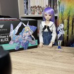 #鈴奈とアリスの部屋 #鈴奈のお絵描き修行 鈴奈/アリス 「寝落ちしちゃってツイート遅れましたけれど、 #100日チャレンジ 45日目✨ 『 #メガミデバイス 』アリス♪✨」 〈鈴ちゃん、いつ組み立てるのー?✨ 楽しみ♪✨〉☺️ 「アリスカワイイ」(° _° ) 〈目をそらさないの、鈴ちゃん〉😅