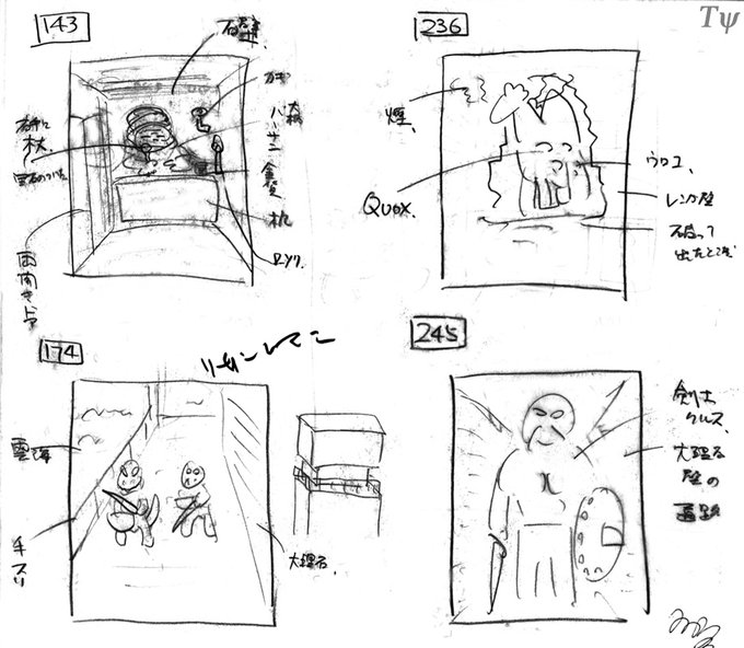 ご参考までに、ゲームブック「悪魔に魅せられし者」イラスト作成用に鈴木先生が描かれた絵コンテの1枚。 スキャンにて紙が薄く裏が透けてしまっているのを補正&調整した為、若干汚れが目立つのはご容赦ください。 #鈴木直人 #ドルアーガの塔 #悪魔に魅せられし者