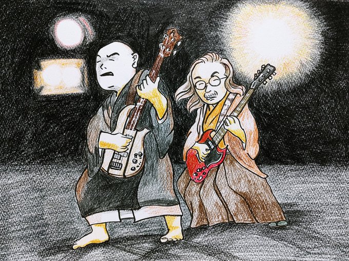 2016 Rock in Japan Festival画像模写 #人間椅子 #鈴木研一 #和嶋慎治 #色鉛筆画 #みんなで楽しむTwitter展覧会 #illustration twitter.com/kazu_yamagis…