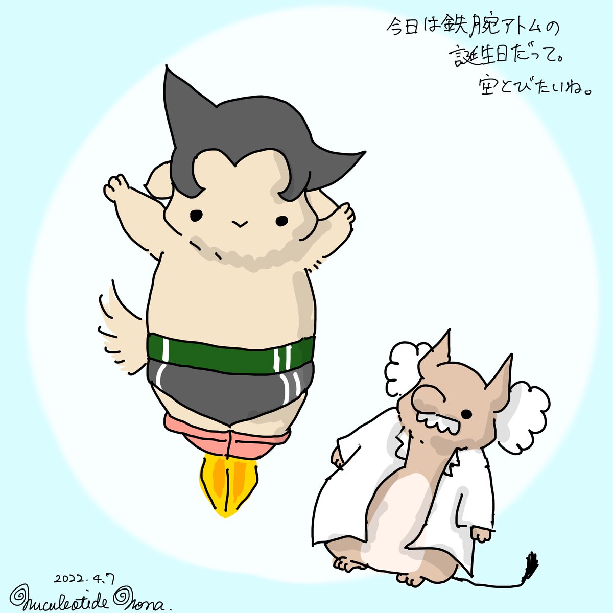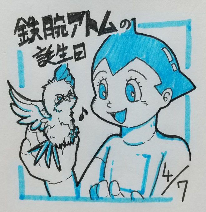 4月7日は #鉄腕アトムの誕生日🎂 2003年4月7日が誕生日だそうです👀 手塚先生の中では2000年代にはアトムのようなロボットが活躍していたということですよね✨ #イラスト #今日はなんの日