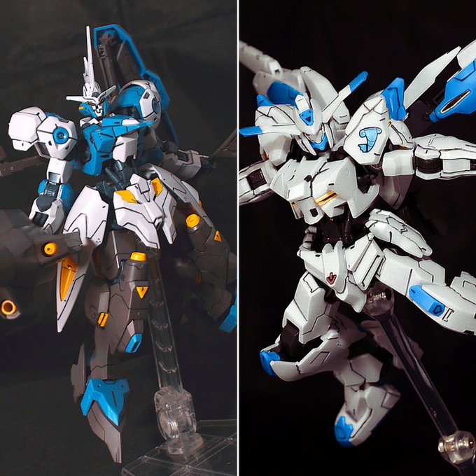 #ガンプラ #ガンプラの画像を貼るとRTされると聞いて #ガンプラ好きとつながりたい #鉄血のオルフェンズ それぞれシーンが違うガンダムバエルvsガンダムキマリス・ヴィダール 我ながらこの2機の対決相当こすってるな