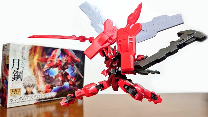 ガンダムアスタロトリナシメント完成しました!左右非対称のデザインに何と言っても大型武器のデモリッションナイフはほんとかっこいい…大型武器はある意味漢のロマン、これに尽きる… #鉄血のオルフェンズ月鋼 #ガンプラ好きな人たちと繋がりたい #ガンプラ