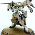 『ガンダムフラウロステオドシウス』 スーパーギャラクシーキャノンが命中し、ラスタルを討ち取った世界線。火星の王、鉄華団の拠点防衛の要となり、MA形態とMS形態の両方の利点を併せ持つ4脚の機体をミキシング、スプレー全塗装で製作しました。 #鉄血のオルフェンズ #ガンプラ #愛プラ2023