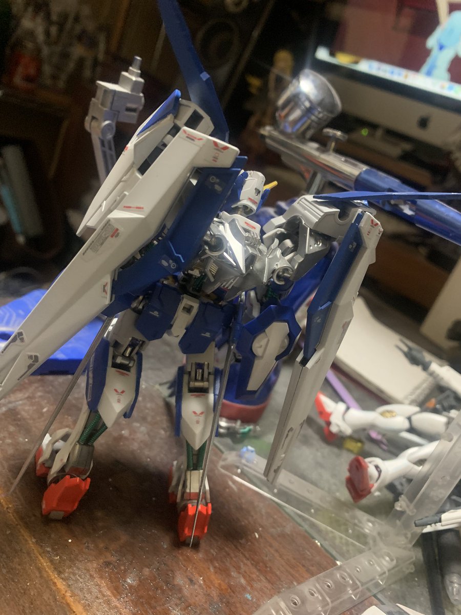 とりあえず完成!!ガンダムアスタロト。部分塗装、デカール。艶消しにて。 トップコートのつや消しは組んだままやってます。まぁ、毎回ですけど。そのまま祭り参加! #鉄血のオルフェンズ #鉄血祭2022 #ガンダムアスタロト #ガンプラの画像貼るとRTされると聞いて