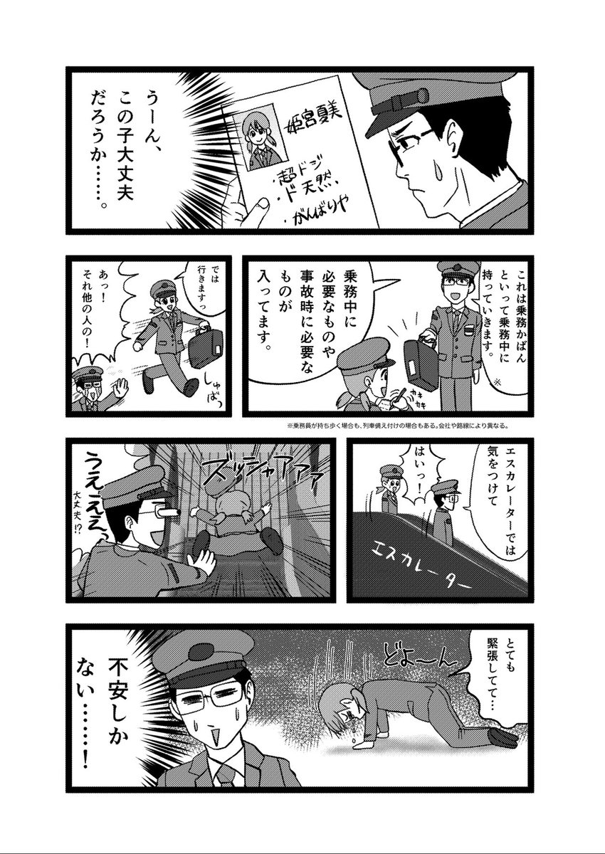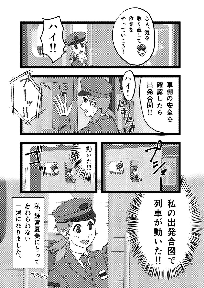 今日も日本のどこかで、新人さんが未来の鉄道を担っていくために経験を積んでいっているんでしょうねぇ(*´艸`*) 鉄道員さん、がんばれーっヾ(≧∇≦)! #鉄道の日 #鉄道150周年 #鉄道開業150周年 #漫画が読めるハッシュタグ #見習車掌姫宮夏美 #鉄道員萌