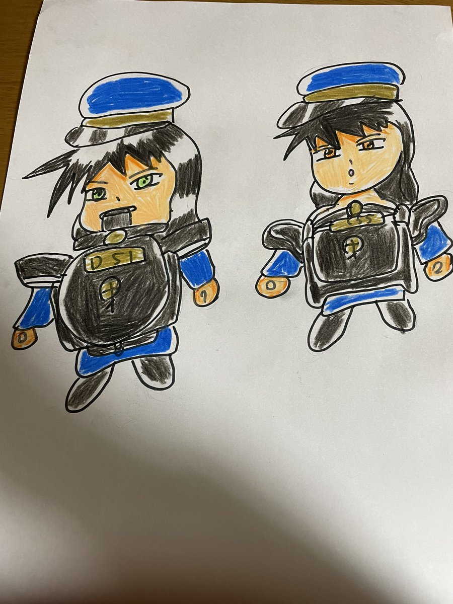 #一日一絵 #毎日絵一枚上げる #イラスト #色鉛筆画 #オリキャラ #イラスト好きな人と繋がりたい #絵描きさんと繋がりたい #鉄道の日 デゴイチとシーゴジュウゴ D51とC55のアーマーを装備した二人組の女 デゴイチは礼儀正しい性格 シーゴジュウゴはのんびり屋