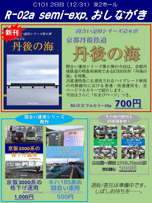 はい!というわけで!! 東2ホール R-02a semi-exp. 設営完了でございます!!! ぜひ!なにとぞ!!丹後の海間合い運用本!!!!よろしくお願いします!!!!!!! #C101 #鉄道島 twitter.com/nototakubutfan…