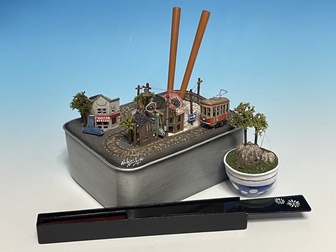 【作品】ジオラマ缶4種もできました。ワンフェス2023冬 4-23-01 FLYING MAGALOPOLIS(島ブース)の一角で展示販売します。#ジオラマ #ワンフェス2023冬 #鉄道模型