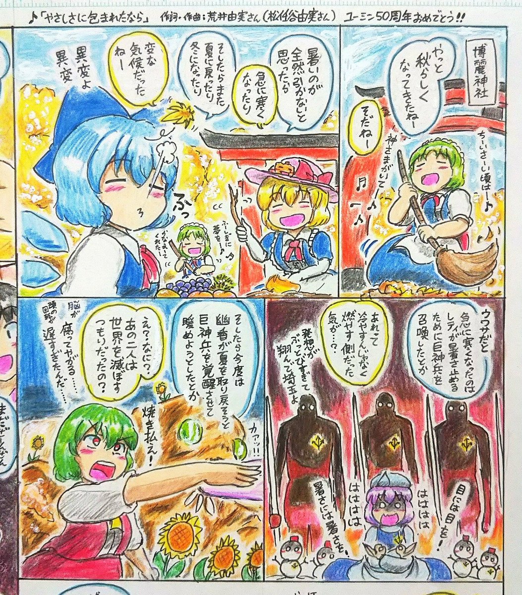 #今月描いた絵を晒そう (10月) #鉄道開業150周年 10月もチルノちゃんいっぱい愛していっぱい描きました❄️ 霊チル・魔理チル・カナチルどれも描いててとても楽しかったです⛩️🔯👒 今月も御覧頂きありがとうございました🍁