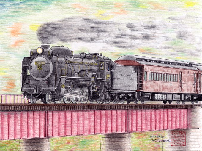 大正期を代表する蒸気機関車は、ハチロクとキューロク。ハチロクはSL人吉として復活していますが、キューロクの本線運転は見られません。かつて、福岡筑豊の炭鉱路線をくまなく走り回っていたといいます。 #鉄道開業150周年オンライン個展 #鉄道開業150周年 #色鉛筆画 #鉄道イラスト