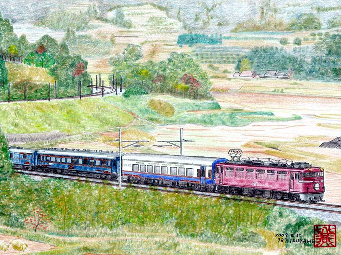 デビュー時「走るホテル」と呼ばれた20系寝台列車も、時と共に陳腐化し、ニューブルートレインと呼ばれた14系、そして24系に世代交代していきました。ベット幅は54センチから70センチへ、段数は3段から2段へ改善されました。 #鉄道開業150周年オンライン個展 #鉄道開業150周年 #色鉛筆画 #鉄道イラスト