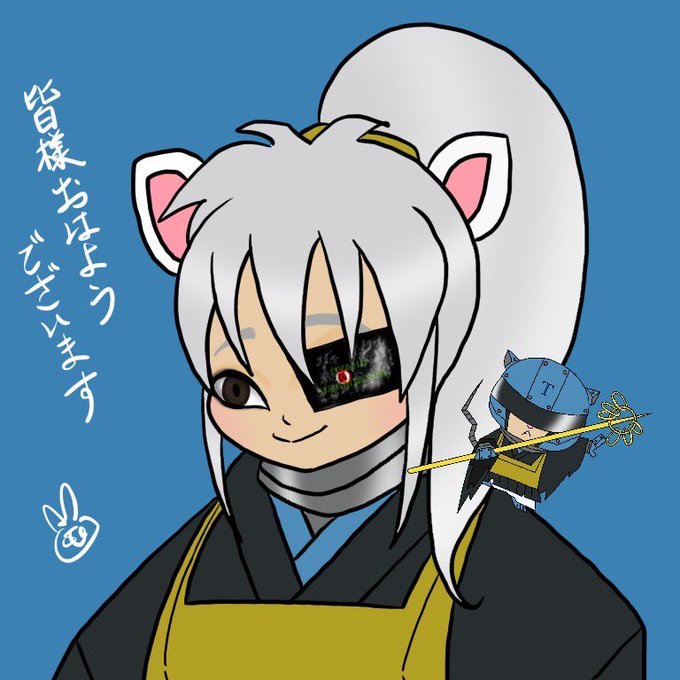 おはようございます🦊🍁 🔵鉄鼠ブルー🐁(過去絵) ?💭お茶でも飲んで… 話でもしようや……(ジョボジョボジョボ) 🐁💭私が淹れるのは普通のお茶なのでご安心ください #妖怪 #鉄鼠 #みんなで楽しむTwitter展覧会