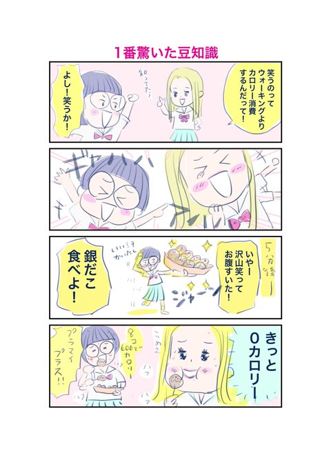 #漫画が読めるハッシュタグ #4コマ漫画 #女子高生 #ダイエット漫画 #gindaco_jp #銀だこ #コルクラボマンガ専科 #1番驚いた豆知識 笑うカロリーはウォーキングより高く 銀だこより低いということ🐙