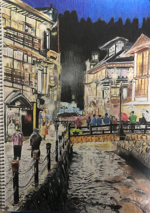 銀山温泉を描いてみました! 定規無しで描くのきつかったァァ 本当に、自分史上一番頑張ったアナログ作品です。反応いただけると幸いです! #銀山温泉 #絵描きさんと繫がりたい #アナログ絵描きさんと繋がりたい #アナログイラスト #背景画 #風景画