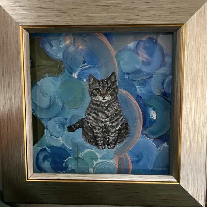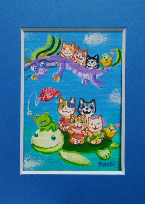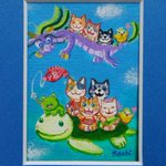 銀座中央ギャラリー 「ATCサイズ展」本日17:00まで 作品紹介 「Shichifuku nyanがいく!」 手のひらサイズで Shichifuku nyanが福を運んでいます😺🐸 昭和レトロなビルのギャラリーに来てにゃ😺✨ #銀座 #銀座中央ギャラリー #ATCサイズ #ミニ額 #猫イラスト #猫好き #イラスト #illustration