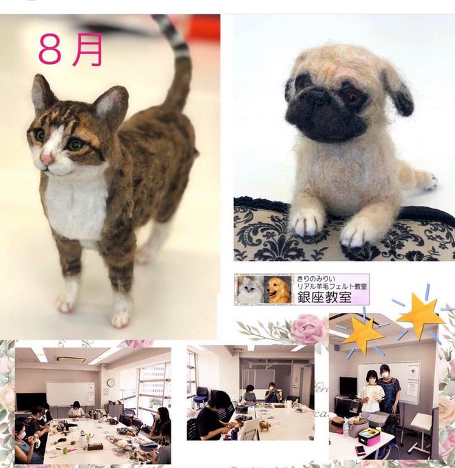 2022年8月銀座羊毛フェルト教室(きりのみりい) 銀座教室のご紹介です。 ○#キジトラ ○#パグ また、次回もお会い出来ますことを楽しみにいております。 ありがとうございました。(紫木みち乃) miriisjapan.or.jp/free/ginza #銀座羊毛フェルト教室 #羊毛フェルト #needlefelting