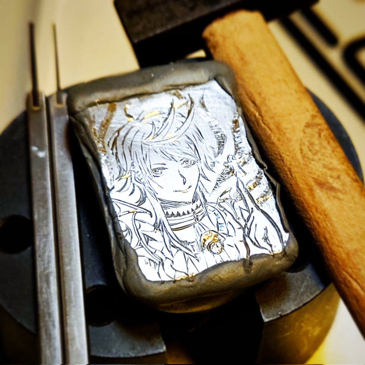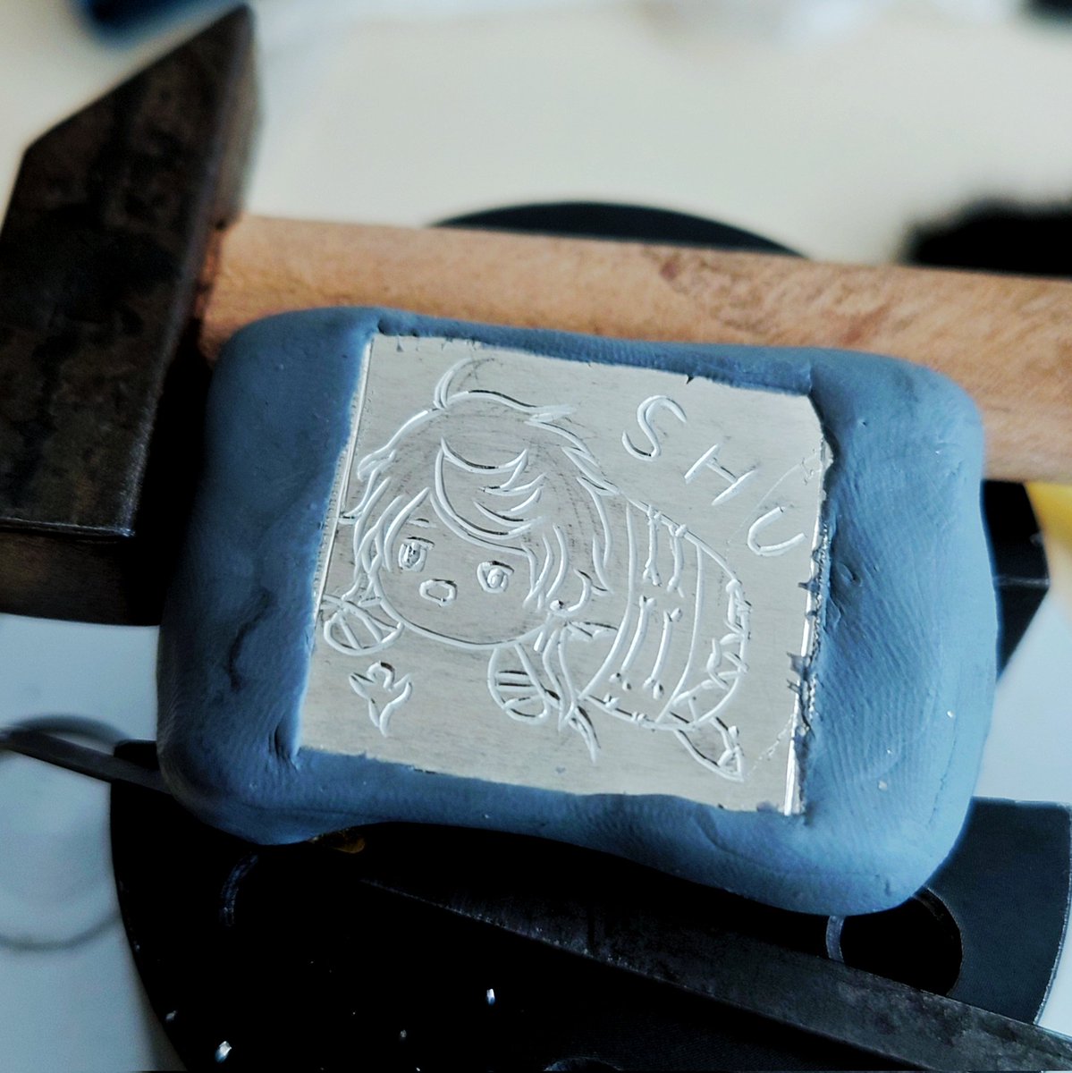 Draw Shu on silver plate by engraving Shu's delicate special milk for you in Luxiem Cafe #tyoukin_acg #shuYamino #YaminoArt #luxiem #銀板彫金 #彫金