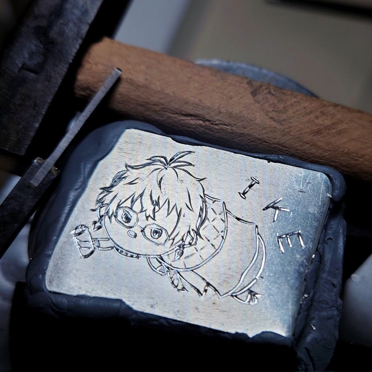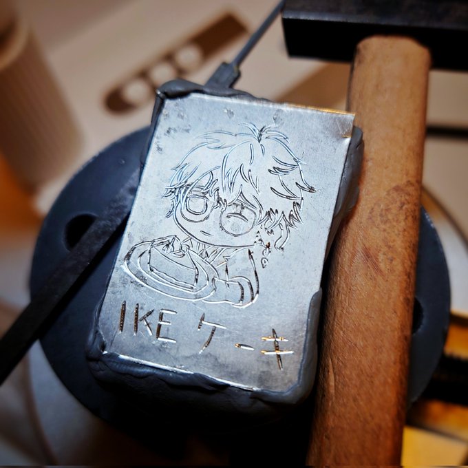 Draw Ike on silver plate by engraving Cake serving by Ike in Luxiem Cafe ~ #TYOUKIN_ACG #ikenography #IkeEveland #銀板彫金 #彫金