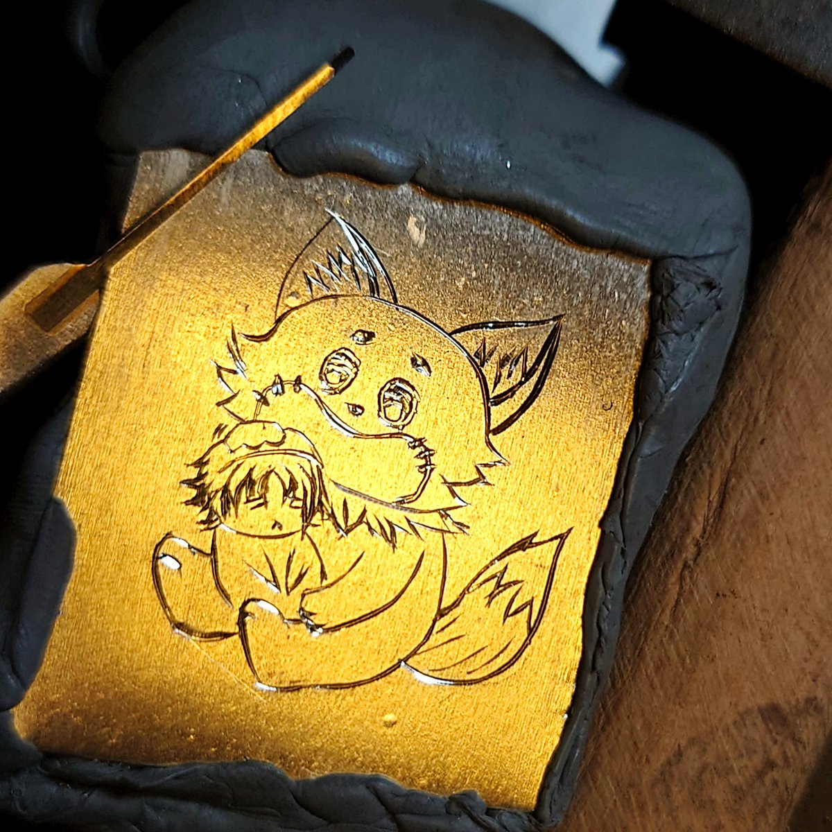 [Fans Pat Pat Lexium Series] 2 Draw #Quilldren hugging Ike Draw #Yaminions hugging Shu Draw #Lucubs hugging Luca Draw #Mystakes hugging Mysta on silver plate by engraving #TYOUKIN_ACG #ikenography #mystArt #drawluca #YaminoArt #銀板彫金 #彫金 #エングレービング #engraving