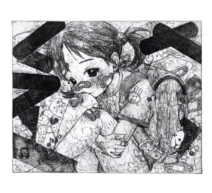 「beautiful2」展にて展示作品 gallery-iyn.com/post/beautiful… 何か寂しくて少し装飾をしてみたら、いい感じになった! #イラスト #イラスト好きな人と繋がりたい #illust #illustration #art #미술 #일러스트 #插图 #銅版画 #galleryIYN #IYN