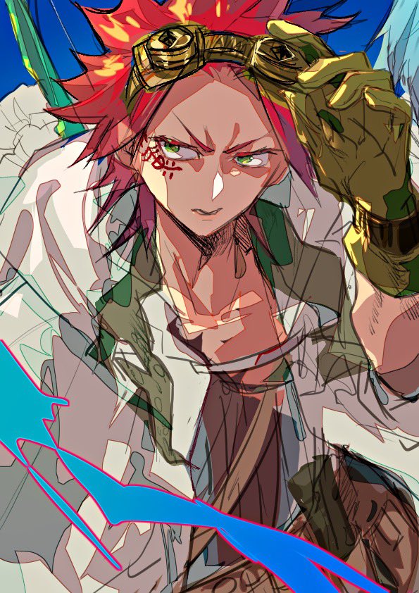 『#錆喰いビスコ』でモンスター作画監督など頑張っていた、蕭さんからめちゃくちゃかっこいいイラストが届きました✨ #碇谷敦 監督と #又賀大介 副監督、キャラクターデザイン #浅利歩惟 さんの似顔絵が…! #SabikuiBisco #筒蛇 #砂クジラ #御三方の似顔絵が似すぎてる #クオリティの高さが半端ない