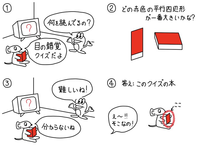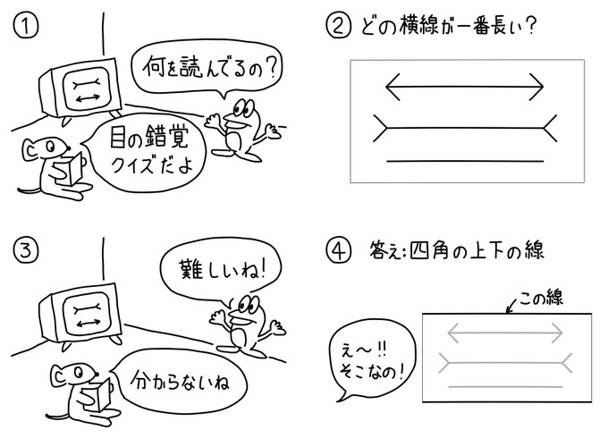 229シュールなムンカー錯視 久しぶりの投稿です!今日からぼちぼち復帰します😅 #漫画が読めるハッシュタグ #みんなで楽しむTwitter展覧会 #目の錯覚 #錯覚クイズ #ムンカー錯視 #クイズ
