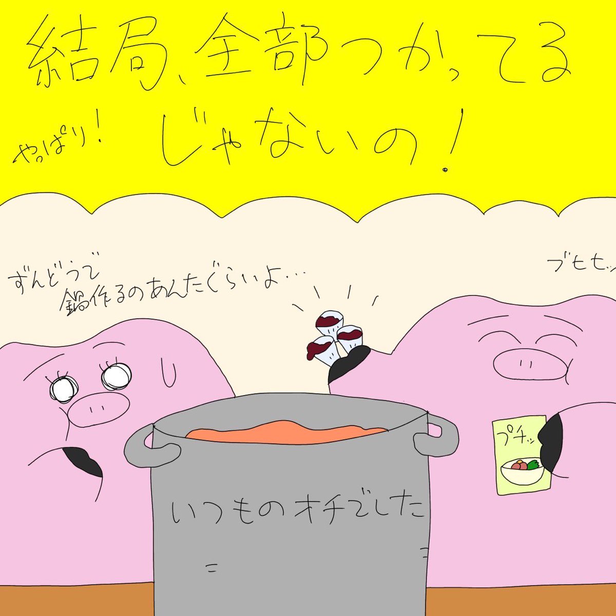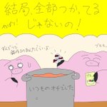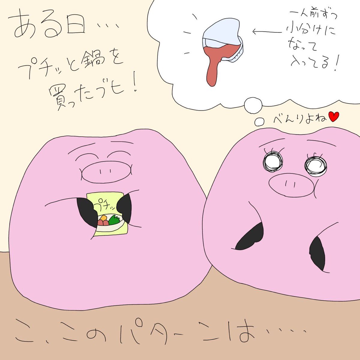 ぶたちゃん、小分けの鍋の元は便利だよね🫕💖 でも、結局こうなるんなら初めから大きいやつにすればよかったんじゃ…🍲✨⁉️ #illustration #絵描きさんと繋がりたい #イラスト好きな人と繋がりたい #鍋 #プチッと鍋 #ばかぶたちゃん