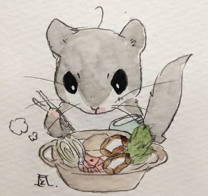 今日は「鍋の日 」に便乗するデビ♪ 鍋のシメはうどんが一番好きデビ!(๑´ڡ`๑)/🍲 #鍋の日 #鍋 #イラスト #キャラクター #ネコ #ネズミ #イラスト好きな人と繋がりたい #Japanesehotpot #illustration #character #kawaii #followme