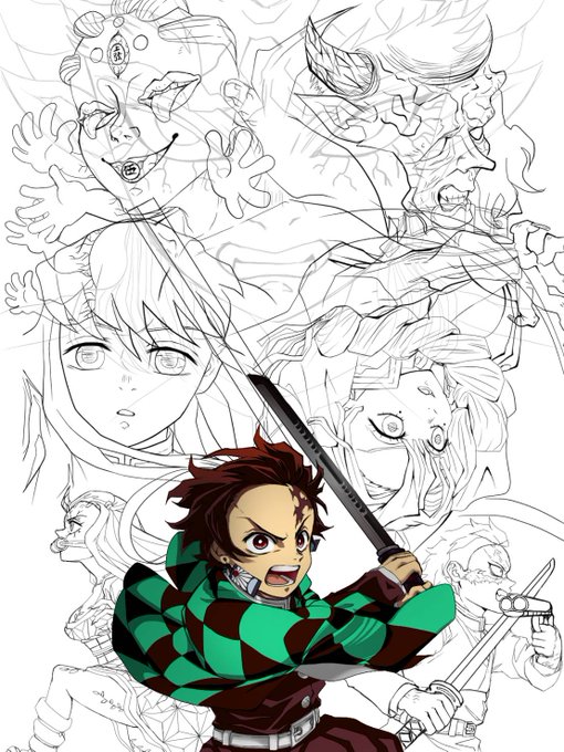 やっぱり色塗りたくなった ので、塗る🎨 イラスト集とかコミックとかをガン見しながら、なるべく同じような色を… #鬼滅の刃 #下書き #絵描きさんと繫がりたい #GWはフォロワーさんが増えるらしい #デジタルイラスト #鍛冶の里