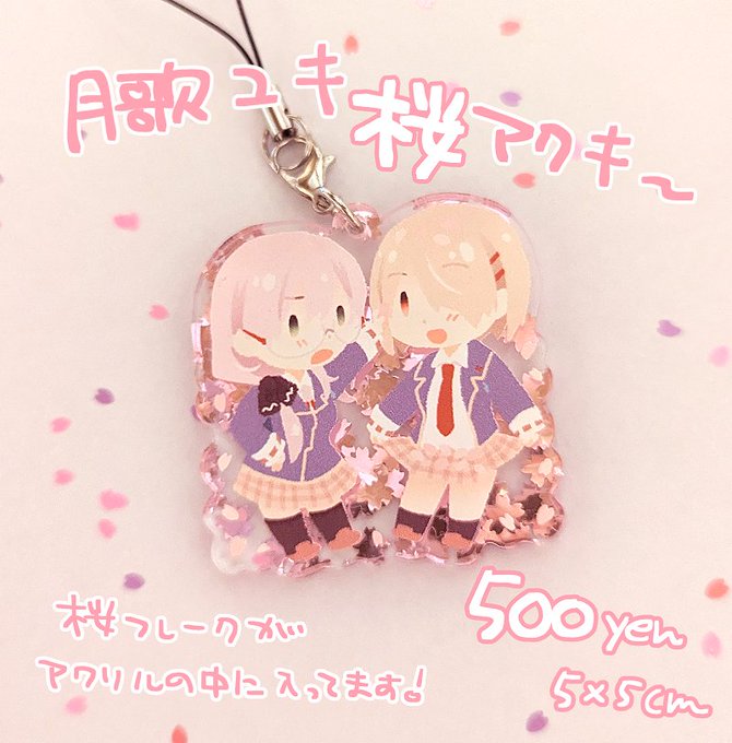 【5/14 #鍵島9 新グッズ】月歌ユキ桜アクキー アクリルは薄くピンクに色づいていて、桜のフレークが不規則に入っています。 🌸通販(5/14の14:00~)→uyuki.booth.pm/items/4766389