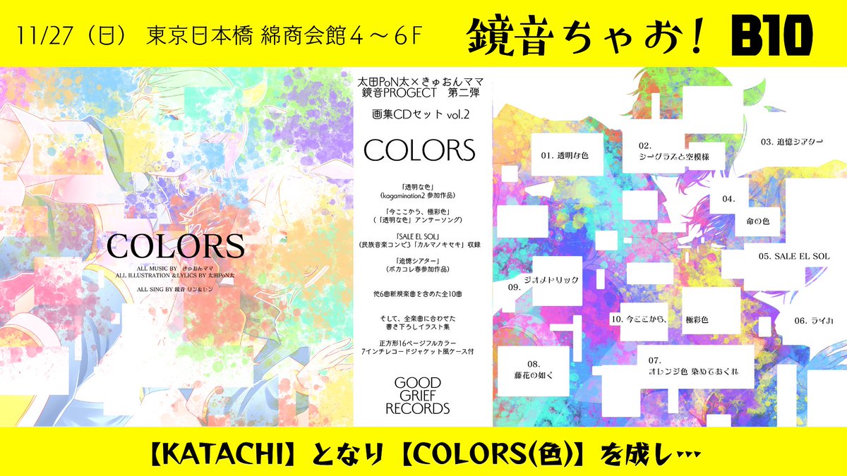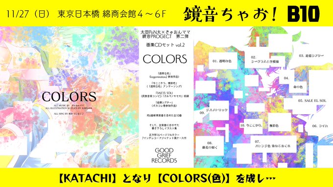 【#鏡音ちゃお🐾B08新刊情報①】 11/27(日)開催の「鏡音ちゃお!」にて ナナミP(@na_na_mi_p)鏡音楽曲イラスト集 「なないろ*ねいろ」頒布します! CDジャケットサイズ/24P/フルカラーイラスト本 ナナミさんの厳選鏡音楽曲9曲イメージイラスト+ #カンバスの追憶YE のジャケットも収録しました🙌