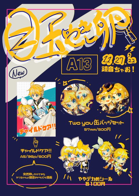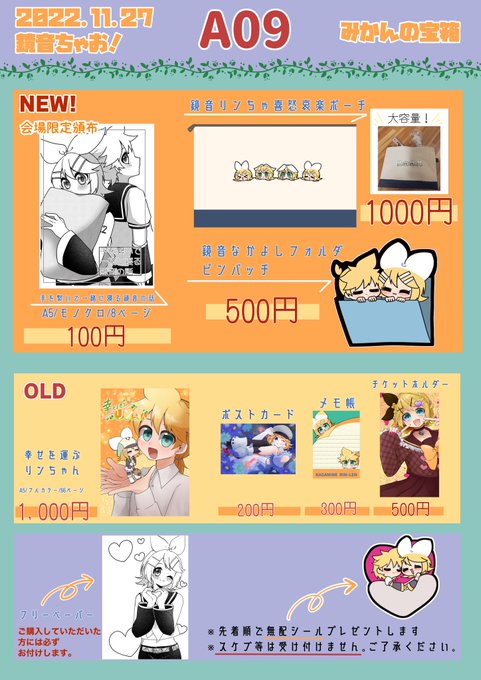 【お品書き】 11/27(日) 開催の #鏡音ちゃお!にて頒布させていただきます! スペース: A13 サークル名: 目玉焼き卵 ギリギリで申し訳ありません🙇♂️当日は何卒、何卒……!!!