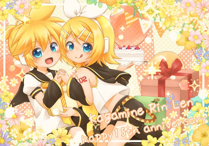 お誕生日おめでとうございます✨ ついに年齢設定追い越して15周年!これからも活躍が楽しみです! #チアプロ イラストちょこっとデコレーションしてお祝い🎉(許可いただいてます!) #鏡音リンレン15th生誕祭 #鏡音リンレン誕生祭2022