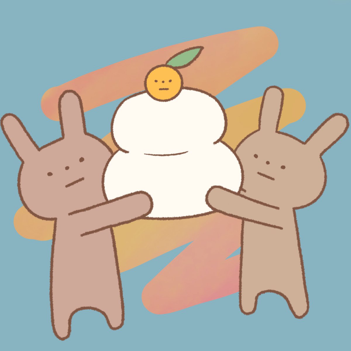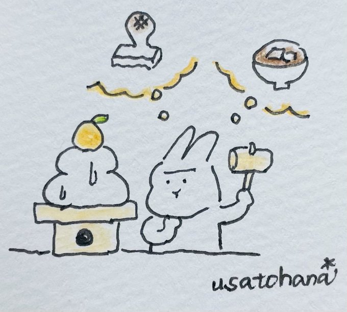 うさこ:うさみ、同じポーズとってみない? うさみ:・・・ うさこ:あのぅ、せめてみかんを頭のてっぺんに置いてみませんかな? うさみ:降りるわよ? うさこ:ごめんご💦写真撮るまでおりないでぇ💦 #鏡餅 #鏡餅とみかん #紅白餅 #絵柄が好みって人にフォローされたい #うさぎのうさこと仲間たち