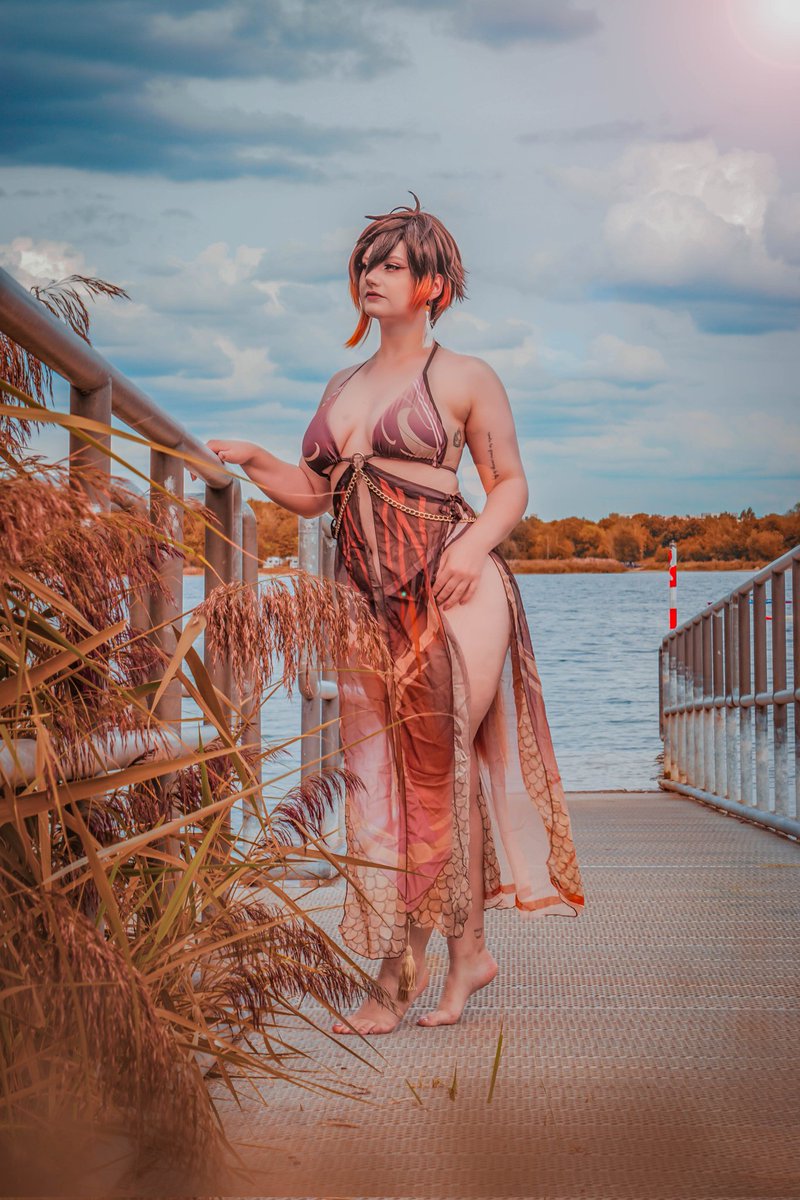 Are you ready for female Zhongli? In a bikini? Well, ready or not, here is my new Cosplay! 🤭✨🏖️🔥 . Ph: @kiiroshy_art . #cosplay #コスプレ #genshinimpact #原神 #genshinimpactcosplay #原神コスプレ #钟离 #钟离コスプレ #zhongli #zhonglicosplay
