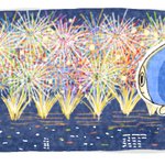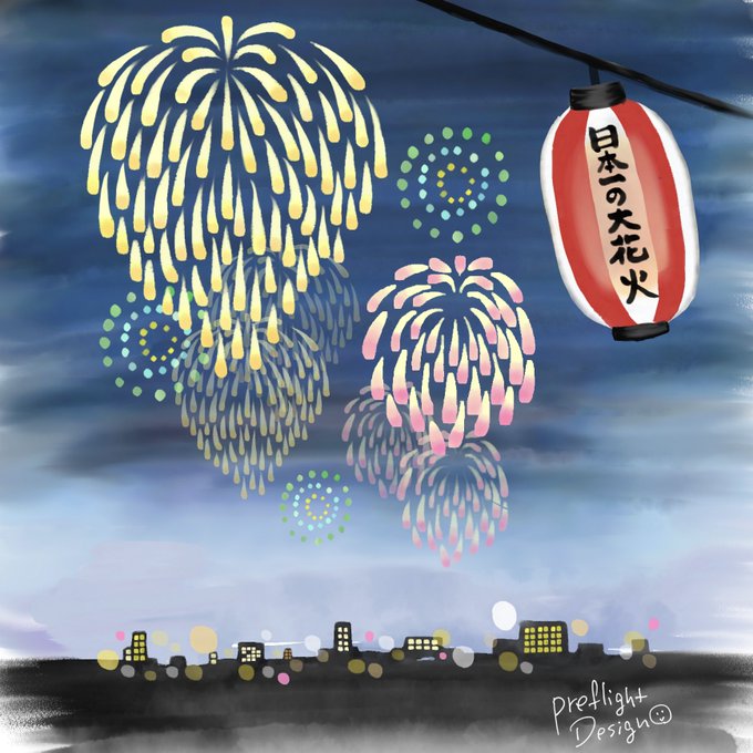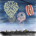 #長岡花火大会 のイメージイラストを描いてみました。 夜空に上がる花火と、信濃川の対岸に見える街の明かりが、とてもとても、美しかったです。 #adobefresco #イラスト #illustration #長岡花火 #新潟県